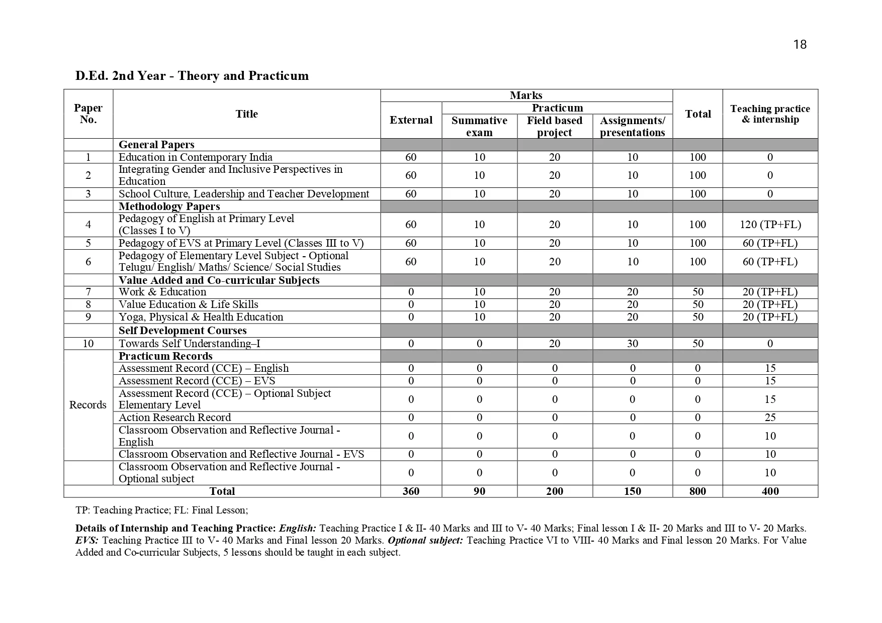 TS D.El.Ed 2nd Year at a Glance: Final Exam Structure